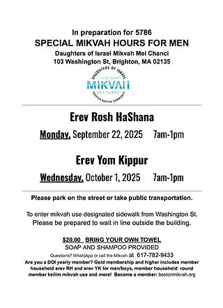 Phone: 617-782-9433 Email: info@bostonmikvah.org